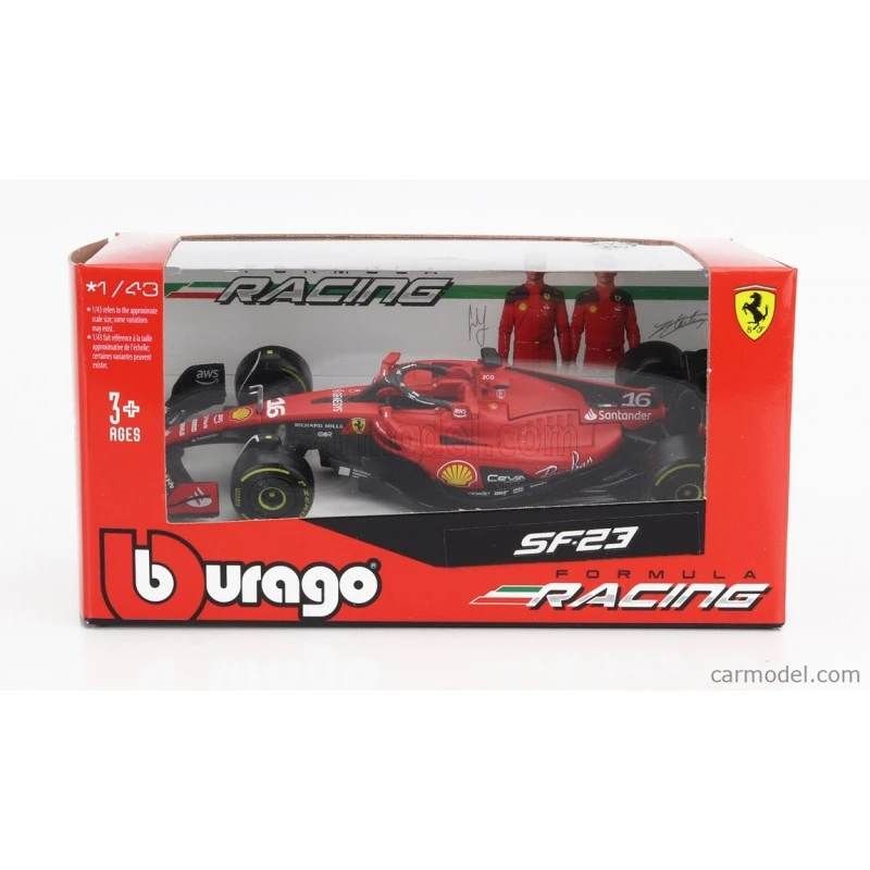 Fabricant : BBURAGO / Marque : FER / Type : SF-23 – Season Car F1 2023 / Année : 2023 / Echelle : 43 / Couleur : Red / Black / Matière : Metal / Référence Fabricant : 36836LE / Numéro de Course : 16 / Pilotes : C. Leclerc / Remarque : With Cardbox Avertissement De Sûreté Ne convient pas aux enfants de moins de 14 ans