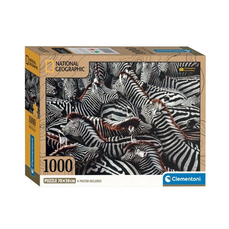Clementoni – Compact Puzzle 1000 Pièces – National Geographic – Zèbres