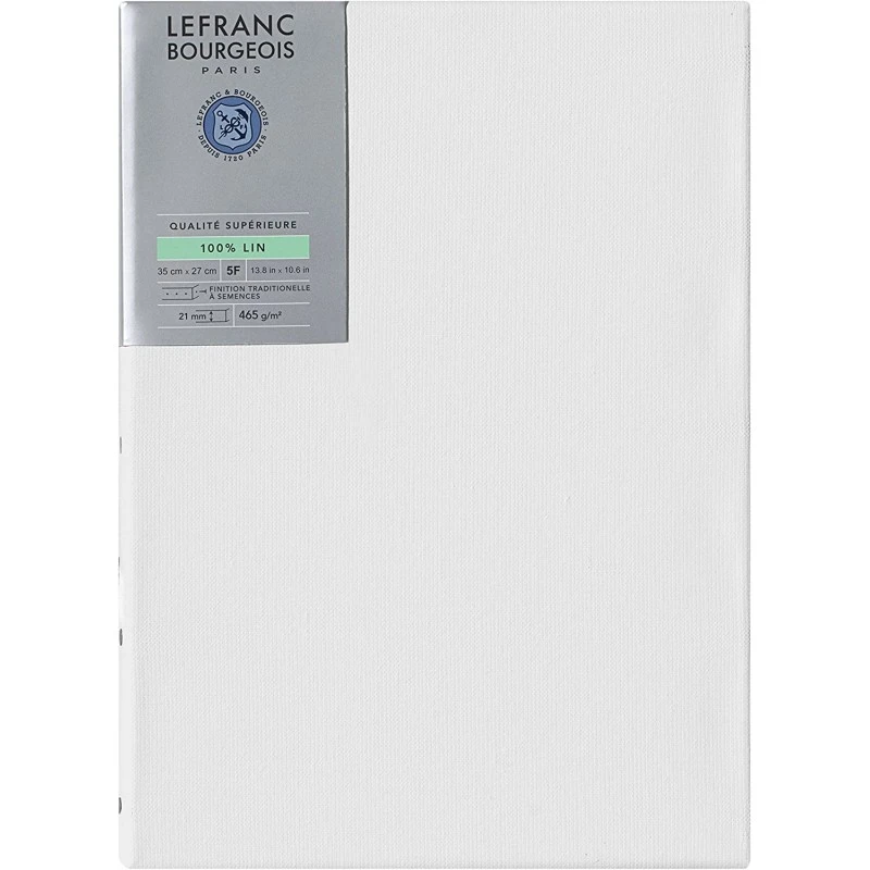 Ce châssis entoilé Extra-Fin de Lefranc Bourgeois est un support d?une qualité supérieure conçu pour les artistes professionnels, leur garantissant le meilleur résultat pour l?exposition de leurs ?uvres et pour sublimer le résultat. La fibre de lin sélectionnée est une fibre longue, récoltée en Europe, ce qui confère à la toile une grande finesse de trame et une grande stabilité dans le temps. 100% lin pour une longévité et résistance à l?humidité maximale. 465 g/m² – poids de la toile enduite. Sections de bois robustes, en pin massif séché au four, résistant à la déformation. Prêt à l?emploi, enduction au gesso fortement pigmenté en dioxyde de titane. Châssis à semences pour une présentation traditionnelle. Toile tendue à la main pour une tension optimale et des coins ajustés. Clés en bois incluses pour retendre la toile si nécessaire. Qualité archive, sans acide pour une durabilité accrue. À utiliser avec des peintures acryliques et à l?huile. Certification FSC garantit une gestion responsable des forêts. Format 5F.